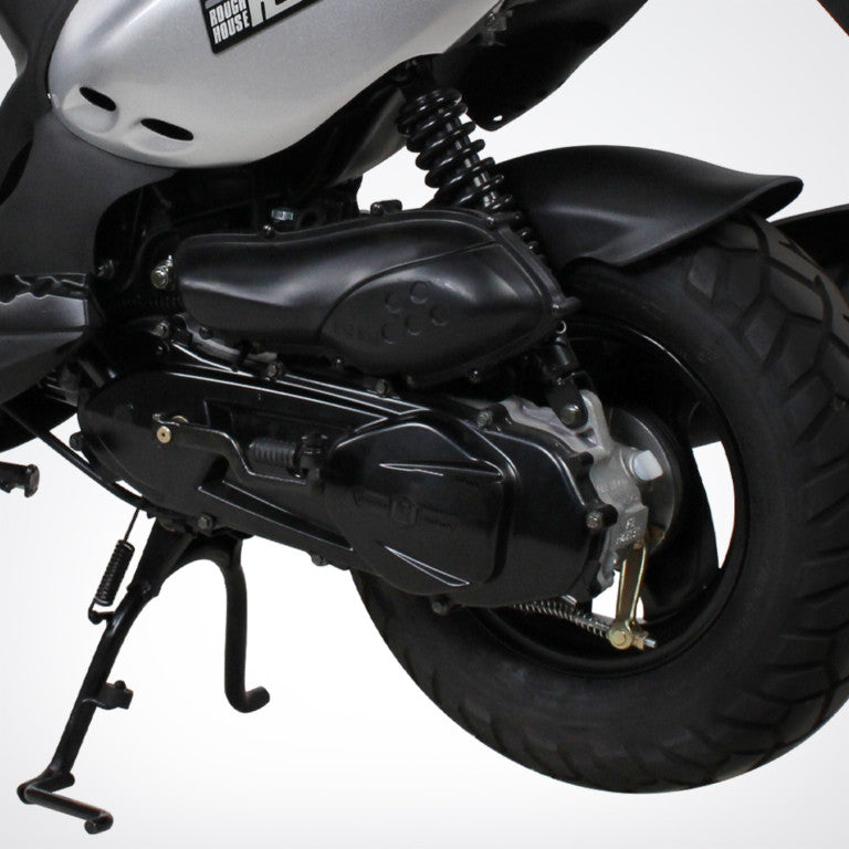 The Genuine Roughhouse 50 is the only scooter in its class that is as tough as it looks. The 50cc 2-stroke engine means that youll have the power to tackle both trails and traffic with ease, leaving other scooters in the dust.